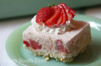 I took two great Southern classics, Frozen Strawberry Dessert and Strawberry Pretzel Salad, and combined elements of both to make this Frozen Strawberry Pretzel Salad, made with cream cheese, frozen strawberries, banana, pineapple and whipped topping on a salty, pretzel crust.