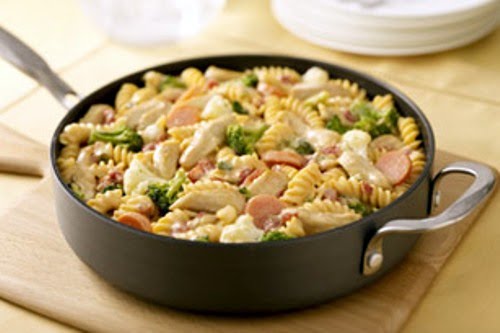 ADD remaining ingredients; stir. Cook, covered, 5 to 7 min. or until VELVEETA is completely melted and vegetables are crisp-tender, stirring frequently.