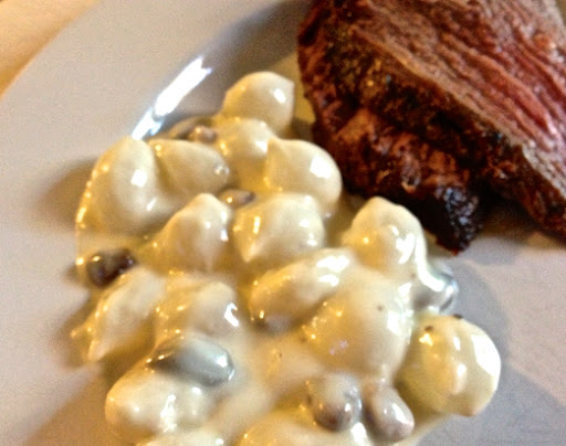 In my version I omit the cheddar, but add about 3 Tblsp of cream cheese (or the Kraft "Cooking Cream" variety flavored with garlic).