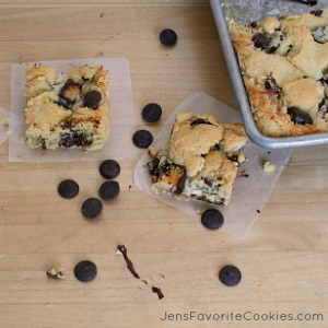 5.With remaining cookie dough, drop in large pieces as evenly as possible over the top of the bars.