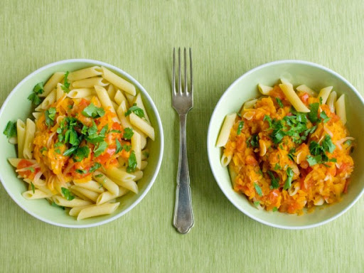 A great fall and winter pasta dish, especially as squash is inexpensive and prevalent in the market. Augment this with another winter vegetable or light salad.