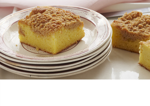 3. Combine flour, sugar and baking powder in a small bowl. Cut butter until crumbly. Sprinkle evenly over batter.