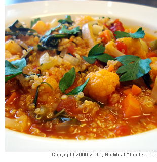 Pour in the stock, water, tomatoes and sauce, cabbage, bay leaves, Italian seasoning, basil, and spinach. Increase the heat to high and bring to a boil. Reduce the heat to medium and simmer until the quinoa and vegetables are tender, about 10 minutes. Season the dish to taste with salt and pepper. Garnish with parsley before serving. Also don't forget to remove the bay leaves!