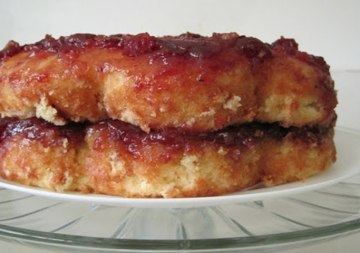4. Divide cooled cranberry topping evenly between two prepared cake pans. Carefully add half the cake batter over the cranberry, dividing between two cake pans.
