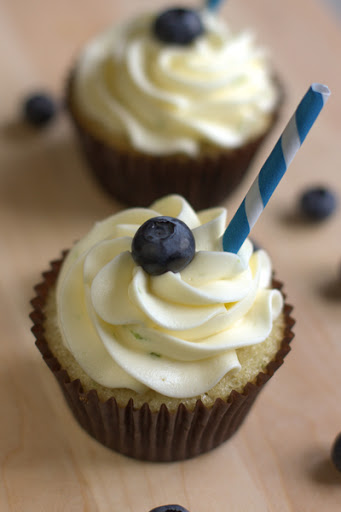 Frost the cooled cupcakes generously with the icing and decorate with additional blueberries and paper straws, if desired.