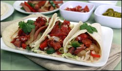 PER SERVING (1/2 of recipe, 3 fajitas): 310 calories, 4g fat, 932mg sodium, 54g carbs, 7g fiber, 12g sugars, 14g protein