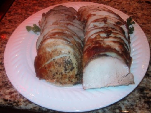 RUB outside of pork loin lightly with olive oil. Sprinkle with salt and black pepper.