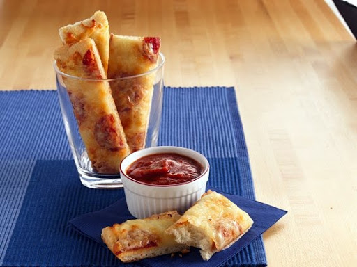 Mix and match the topping on these dipping sticks according to your tastes. Try olives, onions, bell pepper and cooked ground beef or sausage.