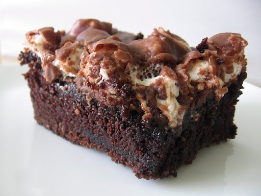 Spread marshmallows in un-greased 9x13 inch pan. Prepare cake mix and pour it over marshmallows. Add Jello (dry) to strawberries, mix well. Pour over cake batter. Bake at 350 for 50 - 60 minutes. Marshmallows will come to the top and strawberries will go to the bottom of cake when done.