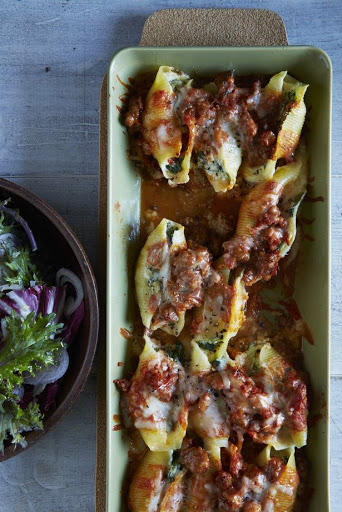 Bring a large pot of salted water to a boil. Cook the shells for 1 minute less than it says on the box. Drain and let cool.