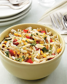 Combine corn, cabbage, bell pepper, parsley, and 1/4 cup dill in a large bowl.