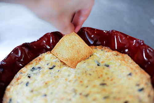 Combine all ingredients in the bowl of a food processor. Pulse 5 to 8 times until mixture is combined but not totally liquefied. Stir and check seasonings, then pour into a small casserole dish. Bake at 350 degrees for 20 to 25 minutes, or until hot and bubbly.