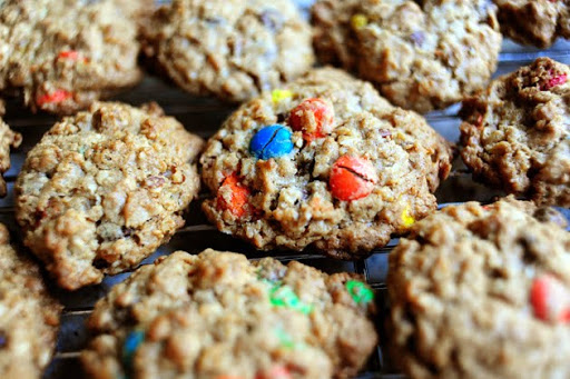 Combine flour, baking soda, baking powder, and kosher salt. Add to mixing bowl and mix till combined. After that, add in remaining ingredients in whatever quantity you prefer. Add more nuts if you’d like, or more M&M’s, more peanut butter chips or chocolate chips.