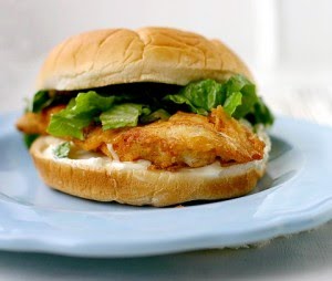 Remove from oil, placing cooked chicken on a paper towel momentarily to drain excess oil from the sandwich. Serve on hamburger buns with mayonnaise and lettuce. Enjoy!