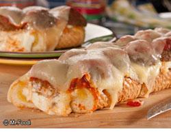 Place garlic bread open face on baking sheet and bake 10 minutes. Remove from oven and reduce heat to 350 degrees.