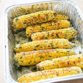 1. Place flavored butter in disposable pan. Brush corn evenly with oil and season with salt and pepper to taste.