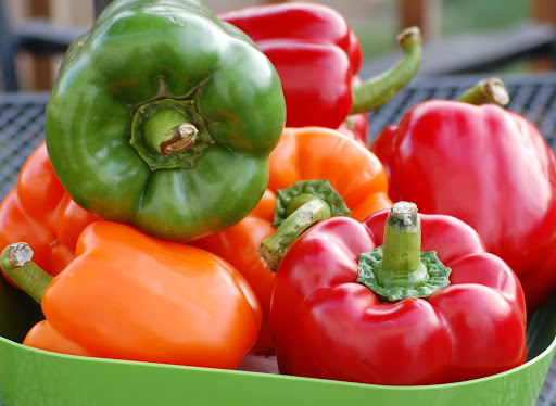 Bell peppers contribute to healthy skin and hair. Be sure to remove seeds and the cap prior to juicing.