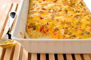 Spread vegetable mixture onto bottom of 13 x 9 baking dish sprayed with cooking spray. Whisk eggs and sour cream until well blended; pour over vegetable mixture. Top with bacon and Velveeta.