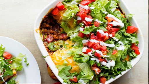 6 Bake 25 minutes. Cool 3 to 5 minutes. Serve topped with lettuce, tomatoes and sour cream.