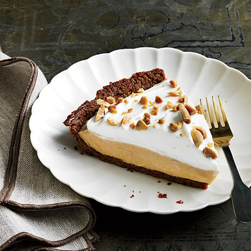 In the same whipped-cream bowl, whip the remaining 1 cup of heavy cream and 2 tablespoons of sugar with the vanilla until stiff. Spread the whipped cream over the pie. Sprinkle the pie with the chopped peanuts, cut into slices and serve.
