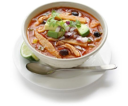 Optional: Garnish with tortilla chips, sour cream and grated cheese.