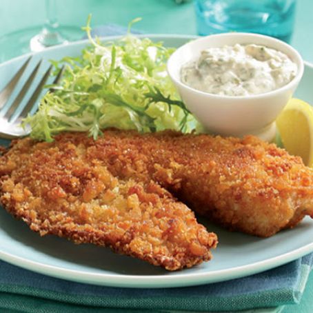 Pan-frying sets the coating and gives this usually mild-tasting fish a browned exterior and rich flavor. The classic tangy tartar sauce and a squeeze of lemon adds a final flavor boost.