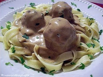 5. Meanwhile in the same pan you fried the meatballs make the gravy. If there is a lot of grease drain leaving a tablespoon or two in the skillet. Add the butter and melt, whisk in the flour, cook for two to three minute on low. Slowly whisk in the broth, add the nutmeg. Bring to a simmer over medium-low heat and simmer for five minutes. In a small bowl temper the sour cream by slowly stirring in a tablespoon or two of the hot gravy. Slowly add to the gravy whisking well. Add the parsley and a pinch or two of salt. Bring back to a simmer. Remove from heat.