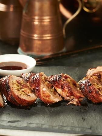 "If you ask me, there is nothing better than pork wrapped in more pork. This beautiful dish is an ode to the Divine Swine, and is sure to wow your guests."—David