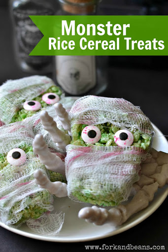 Monster Rice Cereal Treats from A Fork and Beans Halloween Special