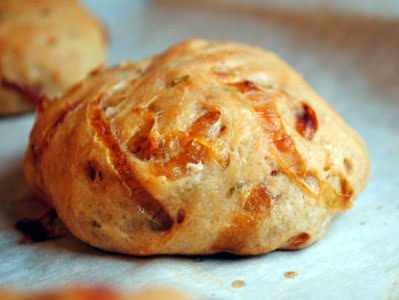9. Once risen, take pieces of the dough and place them on a oiled cookie sheet.