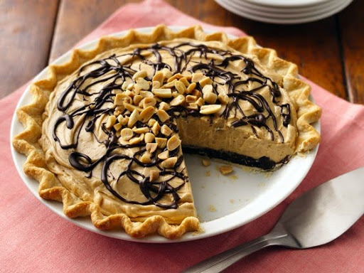 4) In small microwavable bowl, microwave 1/4 cup chocolate chips and the shortening uncovered on High 30 to 60 seconds, stirring every 15 seconds, until melted. Drizzle chocolate over pie; sprinkle with peanuts. Cut into wedges to serve. Cover and refrigerate any remaining pie.