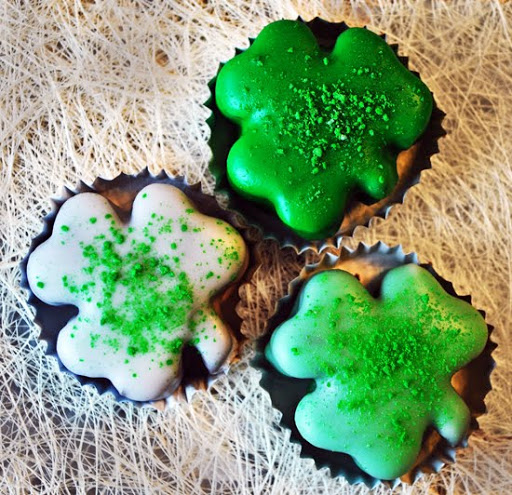 5. For the Bailey’s Irish Cream Glaze: Over a double boiler, carefully whisk sugar, corn syrup, Bailey’s Irish cream, and vanilla together until they are warm, well combined, and smooth. Stir in food coloring if desired, and be careful not to over heat. Remove the sugar glaze from the double boiler, and allow to cool for 3-5 minutes before pouring or dipping the petit fours.