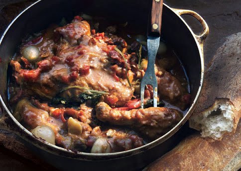 This hearty dish was inspired by frango na pùcara, a Portuguese chicken dish that's cooked in a terra-cotta jug. We've streamlined the method, but kept all of the smoky, tangy, sweet flavors. The chicken is even better the next day when the flavors have had a chance to meld. Serve with crusty bread.