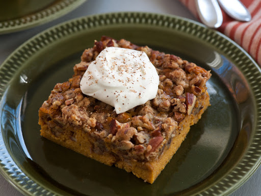 Cut the butter into small pieces and add to a medium bowl. Stir in the pecans, flour, and the remaining 1/4 cup brown sugar, 1/4 teaspoon cinnamon, and 1/8 teaspoon salt and mix until it holds together somewhat but still crumbles. Scatter the topping over the pumpkin mixture and bake until the edges are puffed and the filling is set in the center, about 45 minutes to 1 hour. Remove to a rack to cool to room temperature. Serve with the Bourbon Whipped Cream and/or ice cream.