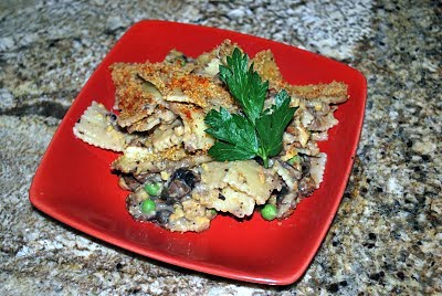 Melt the other tablespoon of Earth Balance and pour into the bread crumbs. Mix until incorporated an spread on the top of the casserole. Sprinkle with paprika if desired.