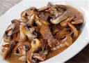• 1 1/2 pounds cubed round steak, cut into thin strips