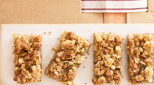 4. Scatter the reserved oat mixture over the apples and cover the pan tightly with foil. Bake for 30 minutes to begin softening the apples. Remove the foil and bake for 20 minutes longer or until the oat topping is golden and the apples are completely tender. Transfer the baking pan to a wire rack to cool. To serve, cut into rectangular bars.