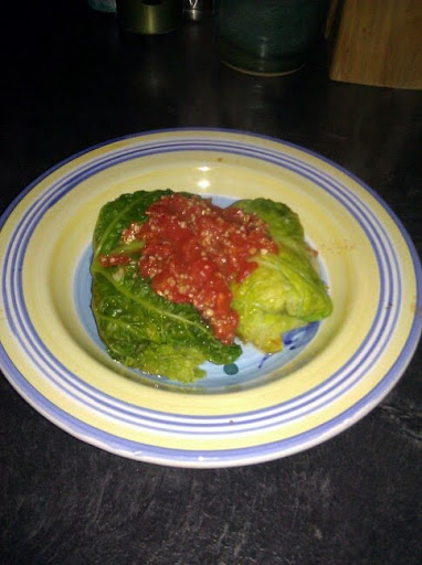 Stir in feta, olives and mint into the couscous. Roll about a 1/2 cup of coucous mixture into cabbage leaves.