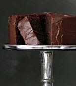 4.Lay 4 strips of parchment paper around the border of a cake stand. Remove the parchment from 1 of the cake layers and place the layer on the cake stand. Place about 1 cup of the chocolate frosting in the center of the layer and spread to within 1/4 inch of the edge. Remove the parchment from the second cake layer and place the layer on top of the first. Apply a thin coating of frosting around the sides of the cake, rotating as you go. Top the cake with the remaining frosting and spread from the top of the cake down and around the sides. Discard the parchment paper strips.