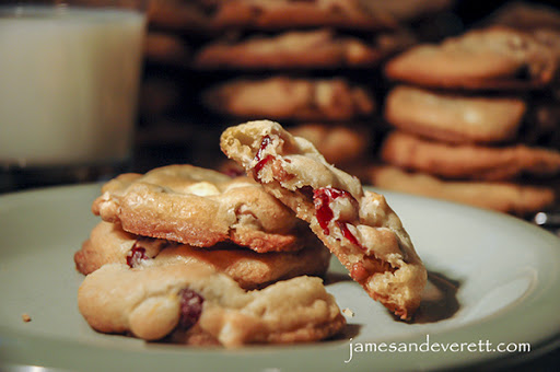 Morsels of white chocolate, dried cranberries, and chinks of pecan combine to make this utterly amazing cookie.