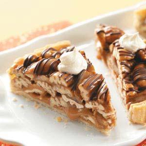 In a large saucepan, combine caramels and 1/2 cup cream. Cook and stir over medium-low heat until caramels are melted. Stir in pecans. Spread filling evenly into crust. Drizzle with melted chocolate.