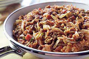 Melt butter in large skillet. Add cabbage, onion, and cook on medium high for about 5 minutes stirring to keep from sticking to pan. Add remaining ingredients, cover and simmer for 20 – 25 minutes. Makes about 8 servings.