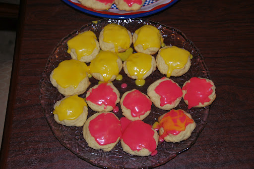 7. Then mix the remaining lemonade with powdered sugar till thick. Add either pink or yellow food coloring and ice cookies.