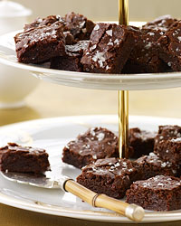In a large saucepan, melt the butter with the unsweetened chocolate over very low heat, stirring occasionally. Remove from the heat. Whisking them in one at a time until thoroughly incorporated, add the cocoa, sugar, eggs, vanilla and flour. Pour the batter into the prepared pan and smooth the surface. Sprinkle the salt evenly over the batter. Using a butter knife, swirl the salt into the batter.