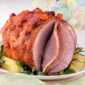 * Spoon half of the cranberry relish over ham. Bake 30 minutes longer or until a meat thermometer reads 140°. Let stand for 10 minutes before serving. Cut pineapple wedges into large chunks; serve with ham and remaining relish. Yield: 12-16 servings.
