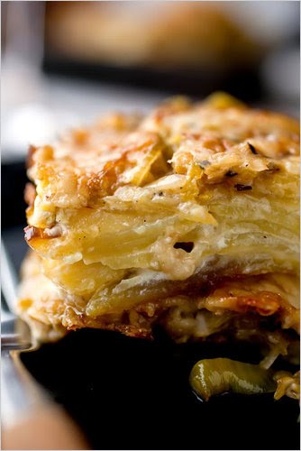 5. Pour the cream over the leeks and potatoes and top with the Gruyère. Cover with aluminum foil and transfer to the oven. Bake for 40 minutes, uncover and bake until the cheese is bubbling and golden, 15 to 20 minutes longer. Let cool slightly before serving.