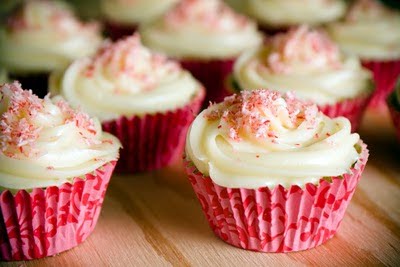Bride 4.0 said that she wanted the wedding cupcakes to have red, so I topped the Piña Colada cupcakes with shredded baker's coconut mixed with a little red food coloring.