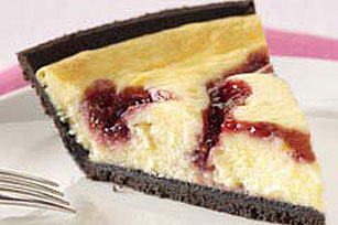 MICROWAVE preserves in small bowl on HIGH 15 sec. or until melted. Dot top of cheesecake with small spoonfuls of preserves; swirl gently with knife.