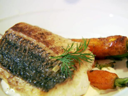 Striped Bass and Preserved Lemon Dressing with Grilled Carrots