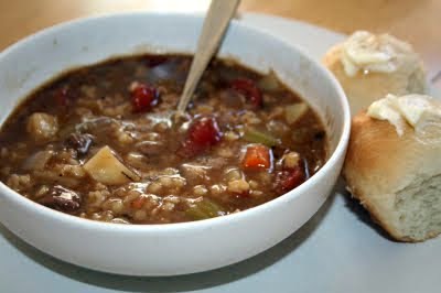 • 1/2 pound medium pearled barley, rinsed in cool water and drained (NOT THE QUICK COOK!)